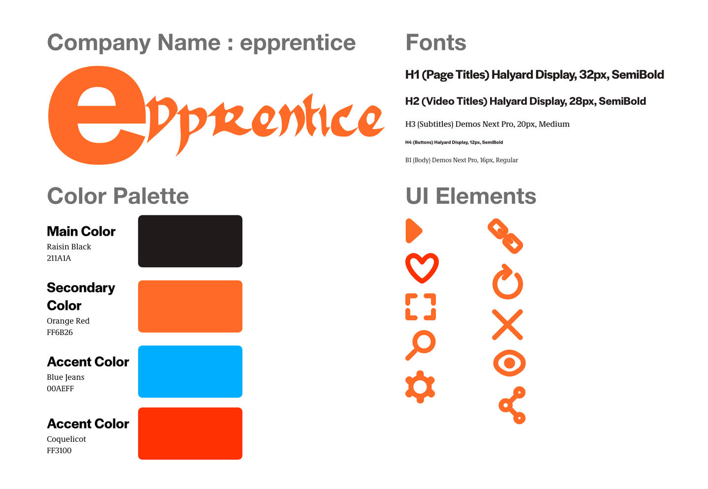 Goal: The goal at this stage was to define a visual identity for our iterated wireframes that communicated value while feeling familiar to users of popular streaming platforms. Testing revealed that users responded best to visible discounts, clear benefit descriptions, familiar layouts and improved hierarchy. The aim was to design visuals that felt recognizable, credible and motivated users to upgrade without hesitation.Methods Used:Style Guide Development- I developed a custom color palette, typography and UI system inspired by the meaning of “apprentice.”- The mix of historical and modern elements reinforced the brand personality of being bold, hip, and smart.User Interface Styling, Prototyping & Testing- I applied the style guide to wireframes to create cohesive high-fidelity prototypes and conducted three remote sessions with users familiar with streaming apps.- The sessions tested how well the visuals communicated premium value, guided upgrade intent and maintained usability across the flow.