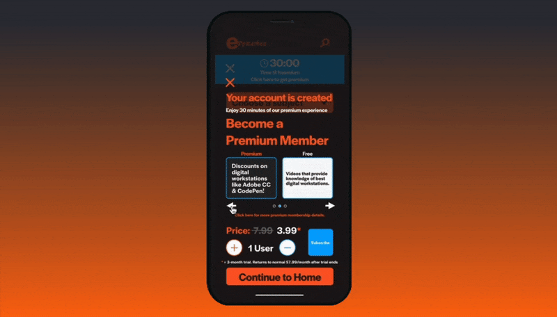 Many media platforms start free to grow users, then fail to convert them to paid. I hypothesized that one of the main reasons this happens is unclear upgrade value, which keeps conversion rates low and financial goals unmet.Epprentice, a technical and creative video platform, faced this challenge. I led design efforts in a 13-day design sprint to test this hypothesis on their platform. More specifically, I was given the task to design an experience that would allow free users to subscribe and pay a monthly fee upon registration in the signup flow for new users and in the sign-in flow as well as within the product once logged in for existing users. The pipeline needed to highlight what users valued most and it was my duty to find this out.I started this project by building a design plan that mapped the UX process and milestones, showing how each step supported conversion. I was hoping that at the end of this sprint, this plan built a value-focused experience that turned awareness into action and drove steady subscriber growth.